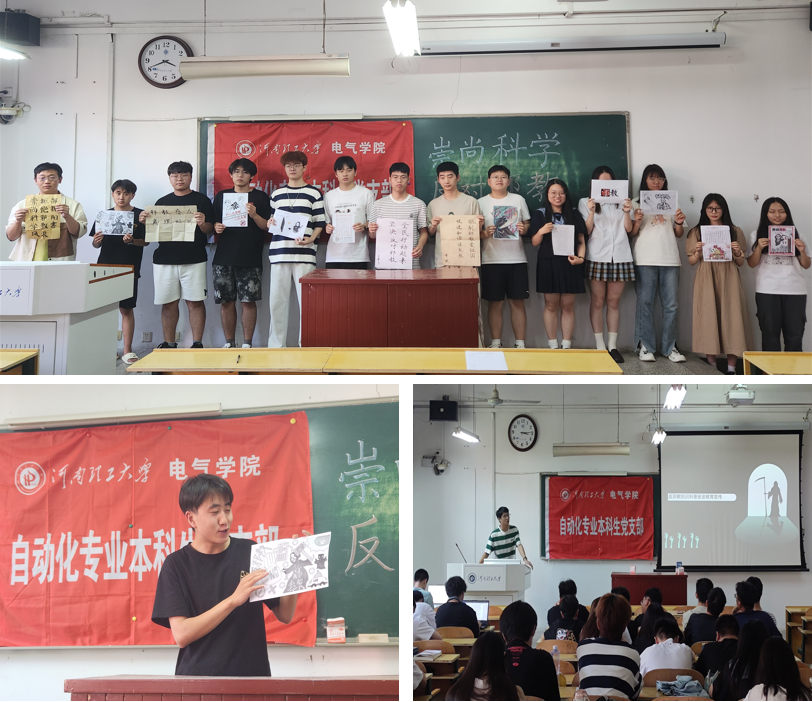 自动化专业本科生党支部于2024年5月28日1在电气楼305举办了反邪教书法绘画作品展。
