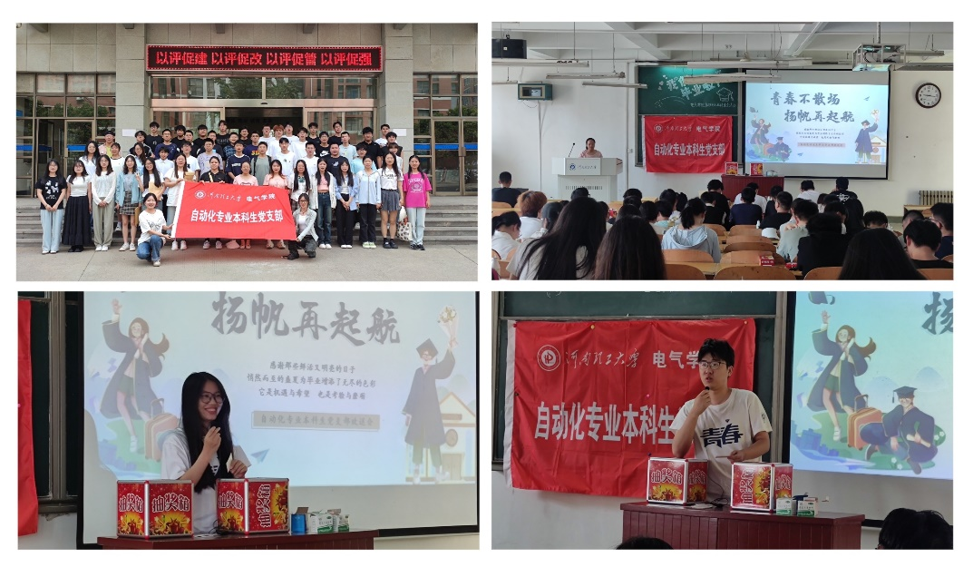六月蝉鸣又起,青衿之志可期。6月19日上午,自动化专业本科生党支部在电气楼401举办“青春不散场,扬帆再起航”毕业生党员欢送会。党支部书记牛凡凡及支部全体成员欢聚一堂,共同为即将踏上人生新征程的毕业生们送上最真挚的祝福。