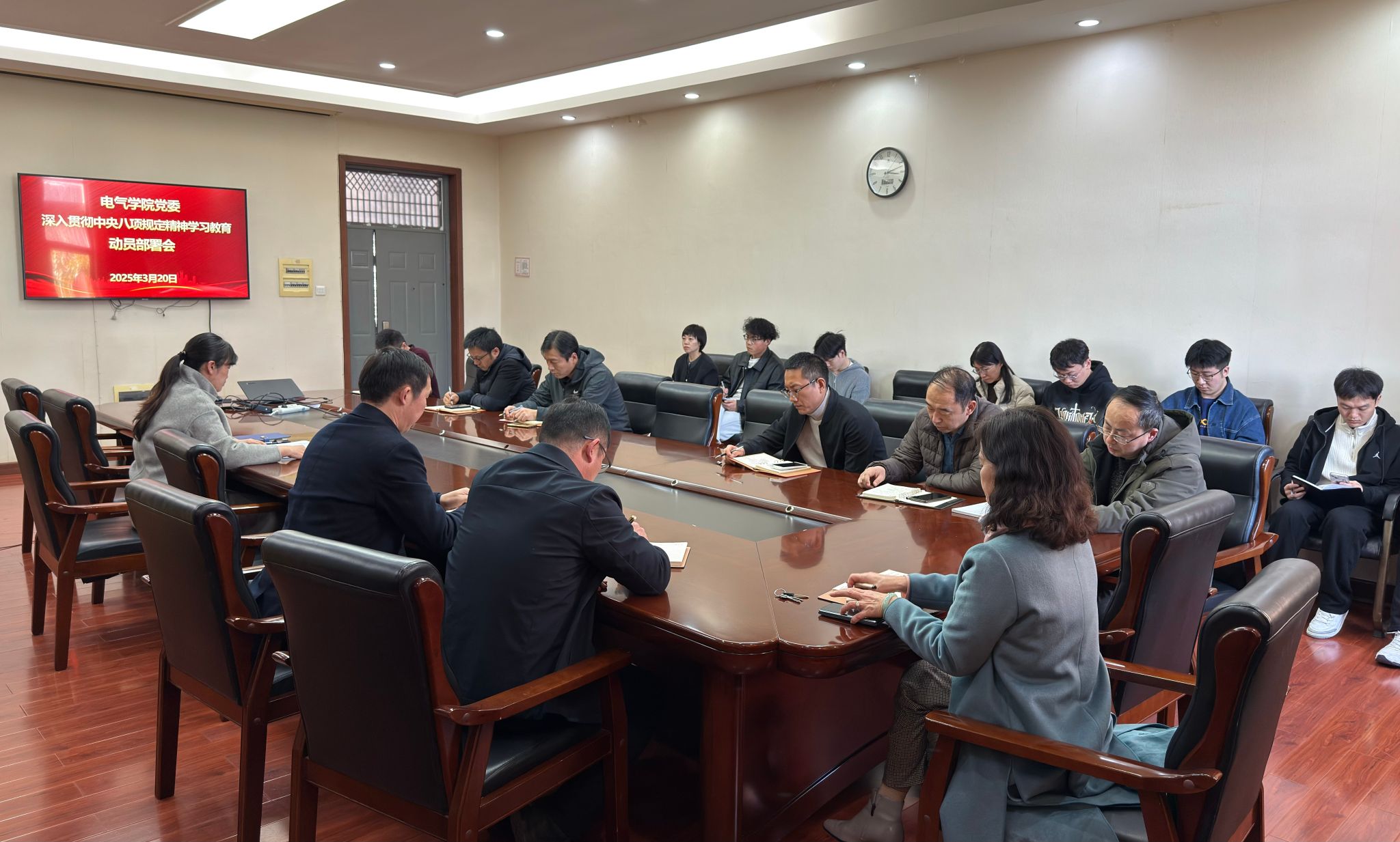 3月20日下午,5g影院 在院楼215会议室召开党委扩大会议,安排部署深入贯彻中央八项规定精神学习教育相关工作。5g影院 领导班子成员、党委委员、各党支部书记参加会议。