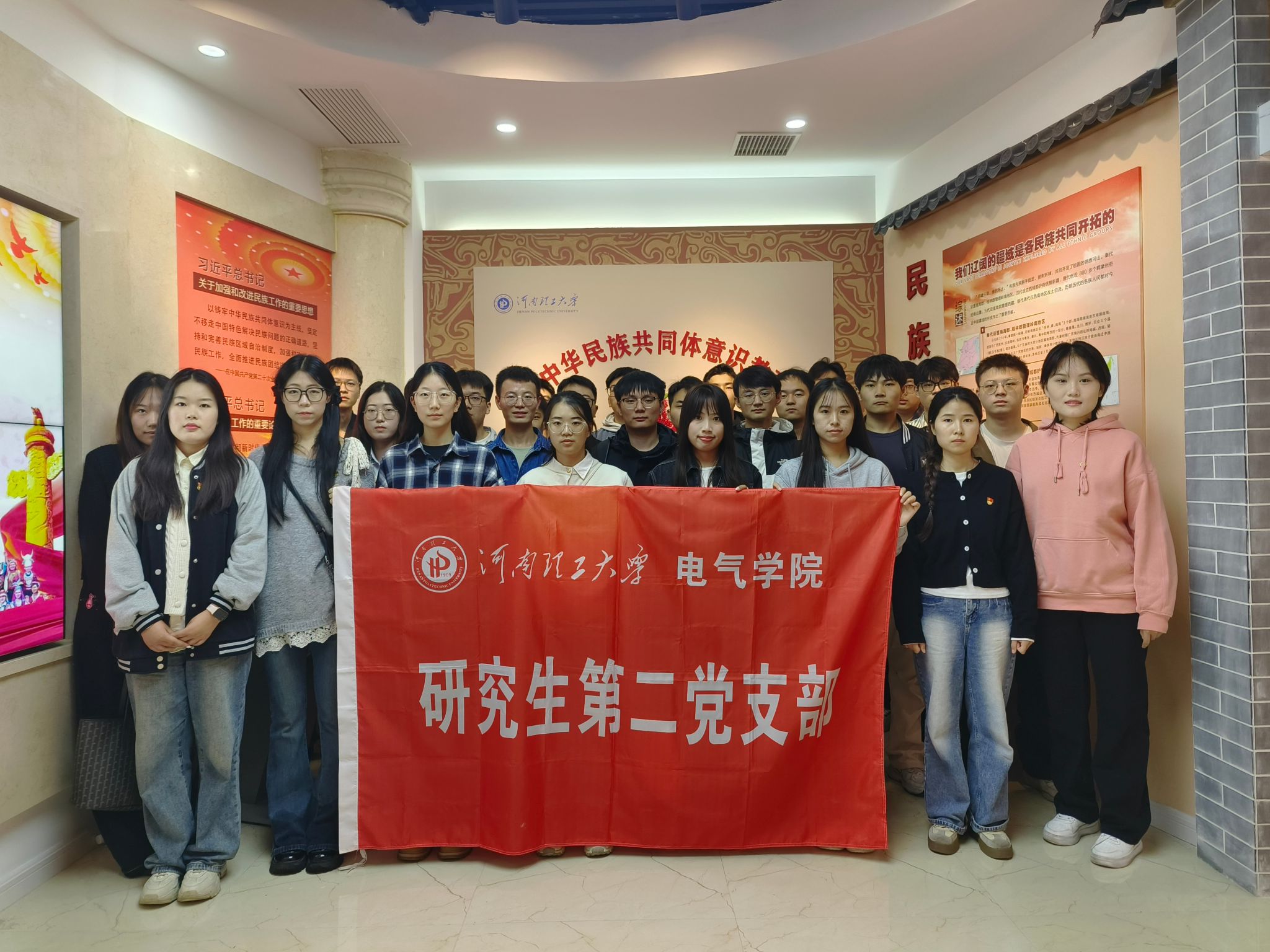 为深入学习贯彻习近平总书记关于加强和改进民族工作的重要思想,认真落实学校关于开展铸牢中华民族共同体意识暨民族宗教政策法规宣传月活动的部署要求, 9月23日下午,5g影院 师生党支部组织党员代表前往学校铸牢中华民族共同体意识教育馆,开展沉浸式主题学习活动,从实践感悟中凝聚民族团结奋进力量。