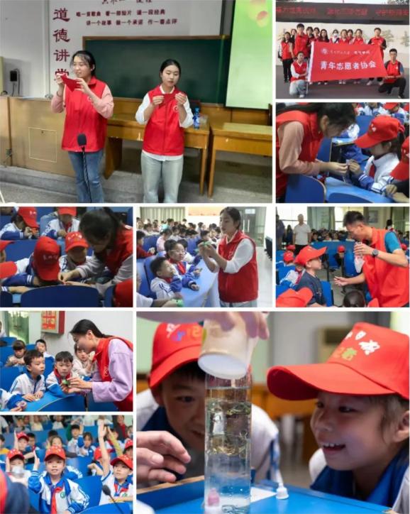 本活动旨在为小朋友们提供一个亲近科学、探索科学的机会,志愿者们通过一系列精彩的实验,让小朋友们从实验中感受到科学的魅力。活动开始,志愿者们进行了“彩虹雨”和“海底火山”的实验,伴着奇幻绚丽的色彩,小朋友们在一声声惊叹中明白了水油不相融的密度特点。紧接着,志愿者们进行了一个“流不出的水”的实验,他们将一块纸巾放入一个透明的杯子中注水,小朋友们惊奇地发现,纸巾因为空隙能够吸收水分,所以看上去是干的。 最后,志愿者们还进行了“纸压尺子”实验和“叠爱心”的趣味手工,现场气氛热闹而温馨。