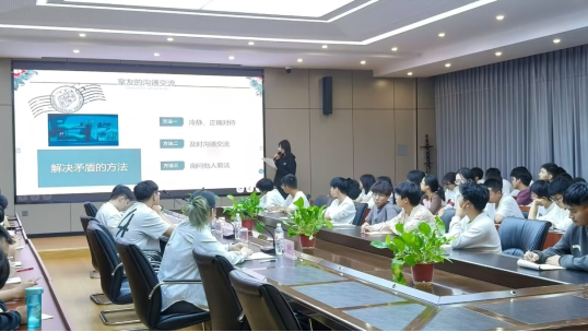 首先,松七宿管史艳荣就宿舍管理和宿舍生活方面发言并解答了同学们宿舍方面的疑问。随后,2024级新生代表们就自己对宿舍管理及活动开展等方面发表了观点,院学生会生活权益部部长卜雨帆分享了自己在宿舍生活方面的经验,并表态学生会生活权益部工作就是设身处地为同学着想,帮助大家更好的适应宿舍生活。最后,院学生会主席张钧沂就此次大会进行了总结,表达了对生活权益部工作的信心与期待,并鼓励大家在宿舍中建立良好的人际关系,宿管交流大会在热烈的掌声中圆满结束。