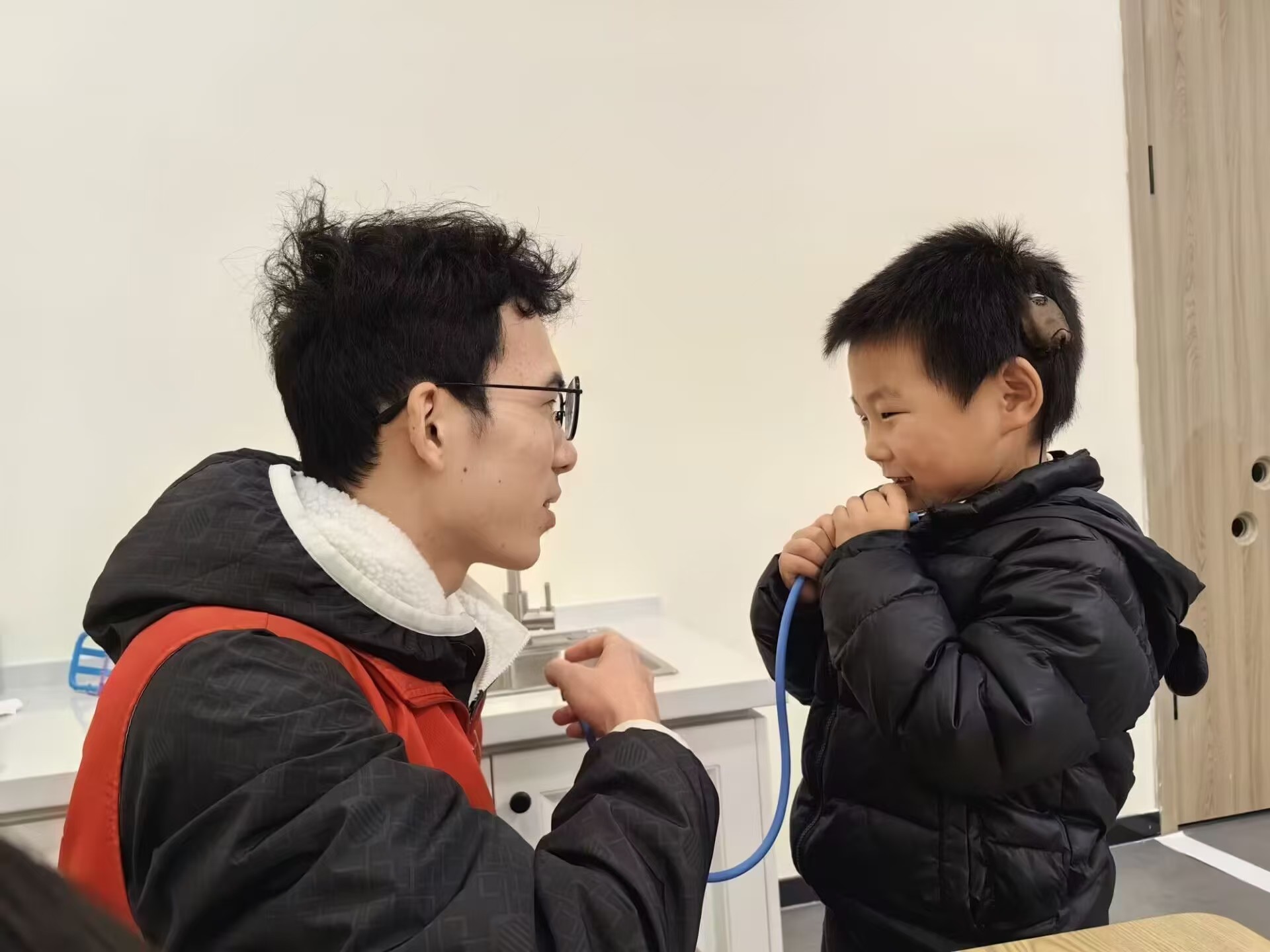 除了游戏和互动,志愿者们还积极协助特教老师进行听力练习。他们耐心地引导小朋友们聆听声音、辨别方向,用实际行动传递着关爱与温暖。在志愿者的陪伴下,小朋友们不仅学到了知识,更感受到了来自社会的关怀与希望。