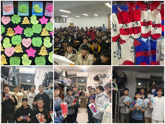 当晚,辅导员代表5g影院 为考研学生赠送了印有“前程似锦”、“金榜题名”、“旗开得胜”等祝福语的状元袜及口罩,并书写了饱含祝愿和鼓励的便利贴送到学生手中——“一路无悔,一‘研’为定”、“放平心态,放手一搏”、“要努力,但不要着急,繁花似锦、硕果累累,都需要过程”、“窗外是风景,笔下有前途,低头是题海,抬头是未来”……一句句暖心的话语,一段段温馨的祝福,是教师对学生最真心的期望和鼓励。