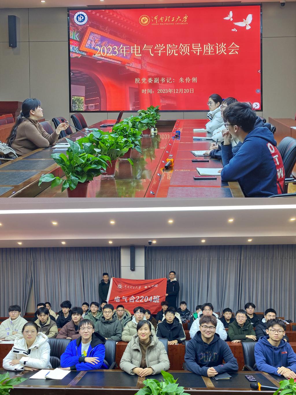 为进一步落实立德树人根本任务,走近学生了解学生生活,12月20日下午,5g影院党委副书记朱伶俐在一楼会议室举行电气合2204班学生座谈会。