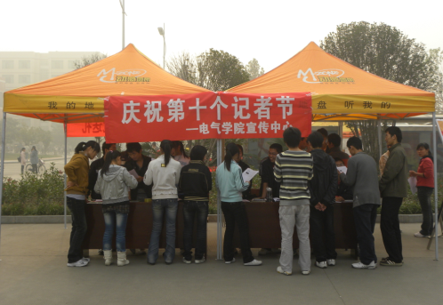 11月8日,5g影院 在一号餐厅东门前广场举行记者节庆祝活动。同学们通过展板、宣传单等形式,向全校师生宣传记者节,吸引了不少师生驻足聆听、观看。