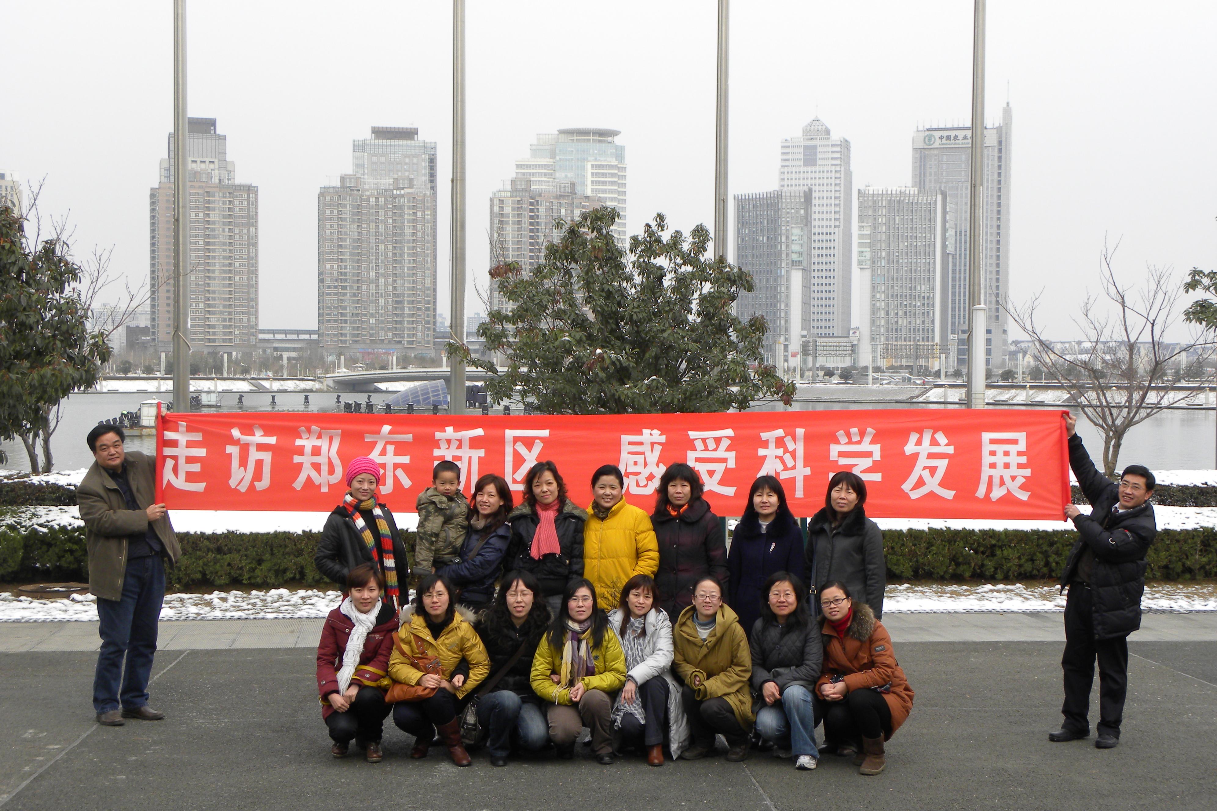 女教职工的到来受到了管委会副主任杨东方热情地接待。在相关领导的陪同下,女教工们首先来到了郑东新区CBD,先后参观了郑州国际会展中心的展览中心、会议中心和多功能大厅、河南省艺术中心和郑州会展宾馆等,大家无不为新区的宏伟面貌和惊人的发展速度所震撼。接着,大家又来到了龙子湖高校园区,高校园区内规划有