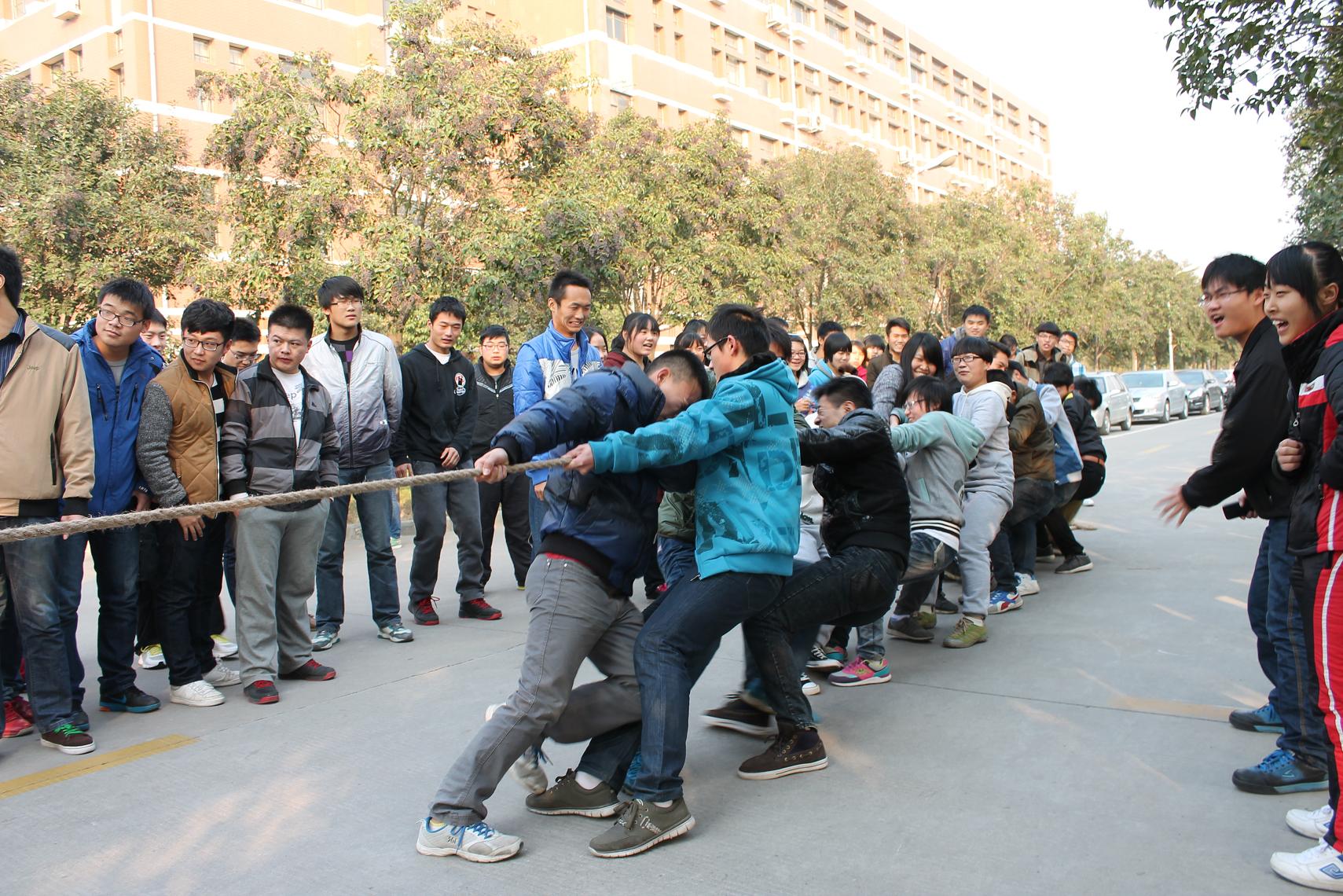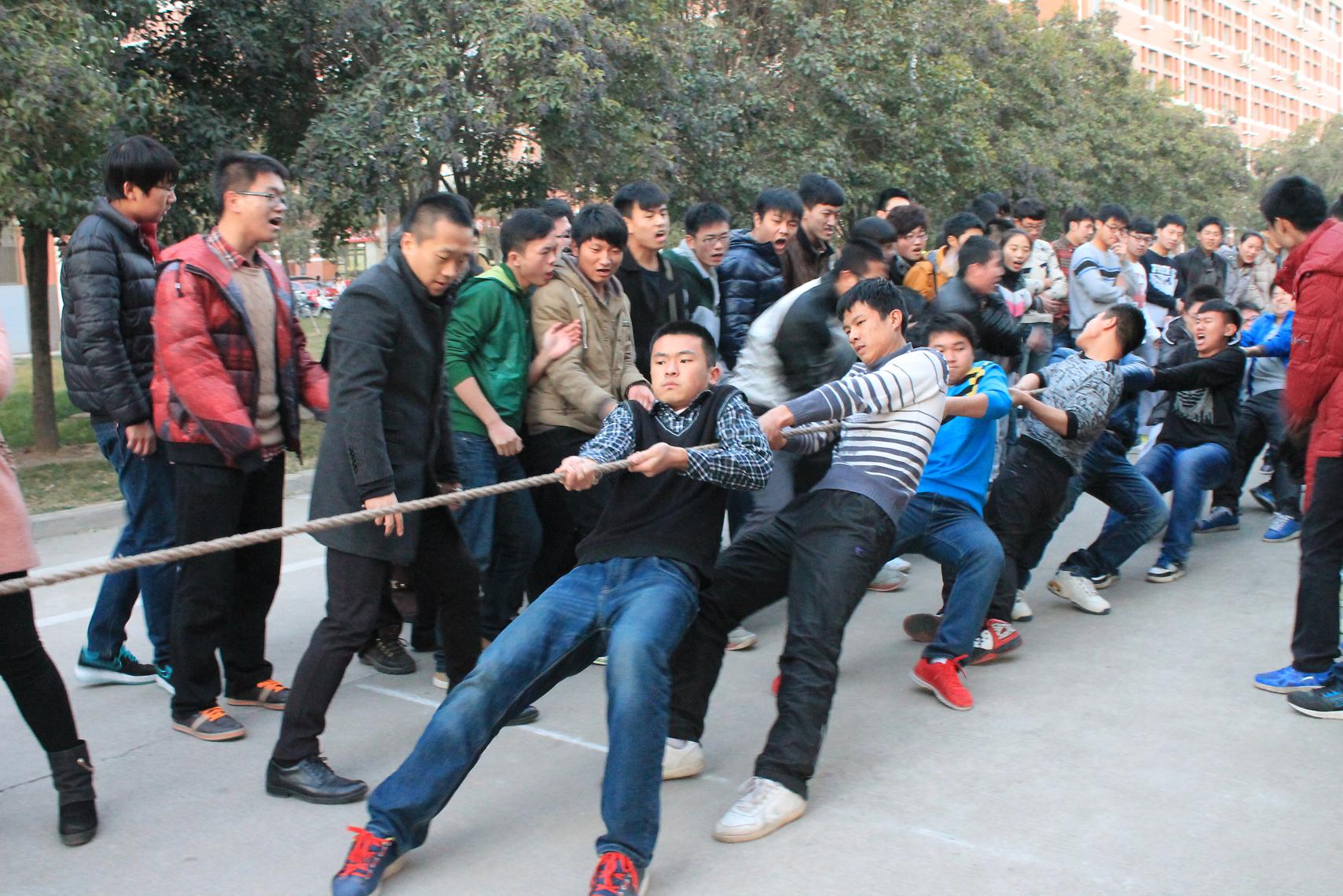 比赛当天,参赛选手早早来到比赛场地,在辅导员王帅老师和各班体育委员的指导下,排兵布阵,制定胜敌策略,力求在比赛中发挥出最佳水平。比赛正式开始前,各班参赛队员手交叉着手,脚交叉着脚,紧握麻绳,准备好状态。随着裁判员一声哨响,两边队员齐心协力,试图用早已制定的策略击败对方。场下的拉拉队热情高涨,为参赛选手呐喊助威,“一二、一二”“加油,加油”声震彻天空。比赛结束后,大家从比赛中的对手变成了朋友,参赛队员们互相交流,充分展示了学校的大爱精神。本次拔河比赛,13级电气3班勇夺桂冠,电气4班、电子1班分获亚、季军。