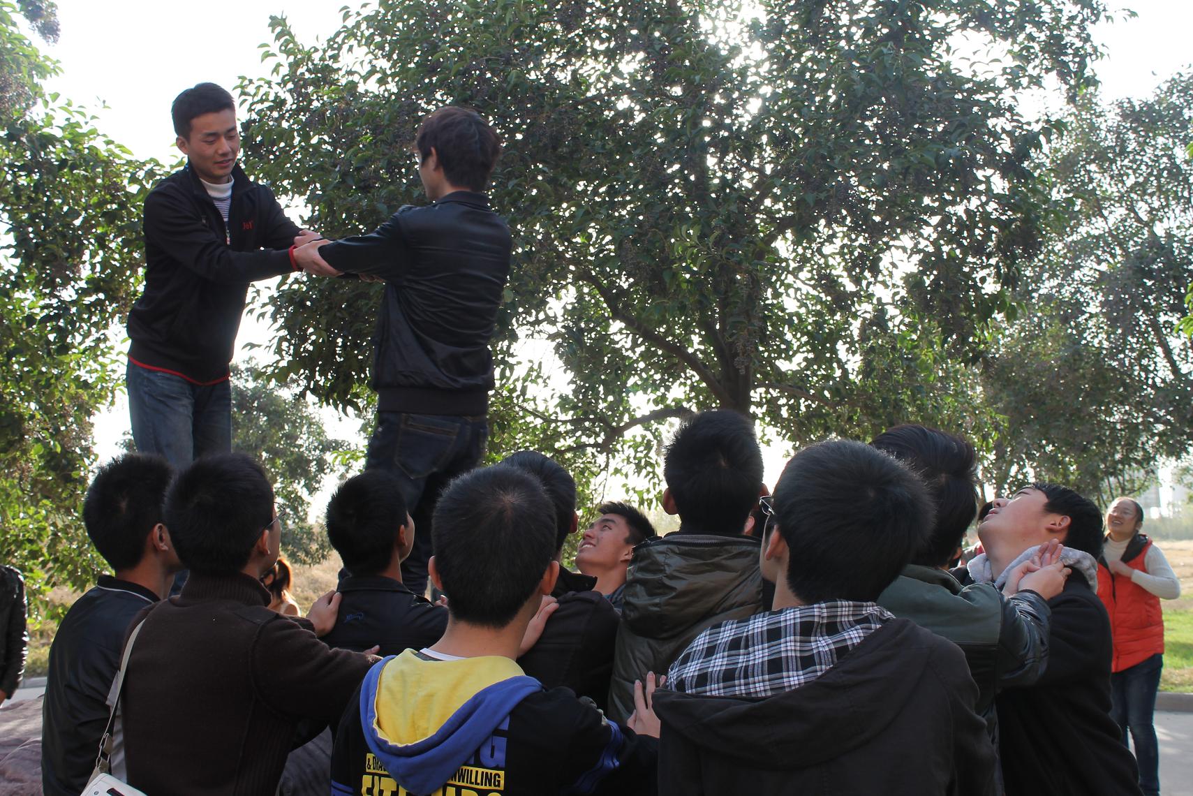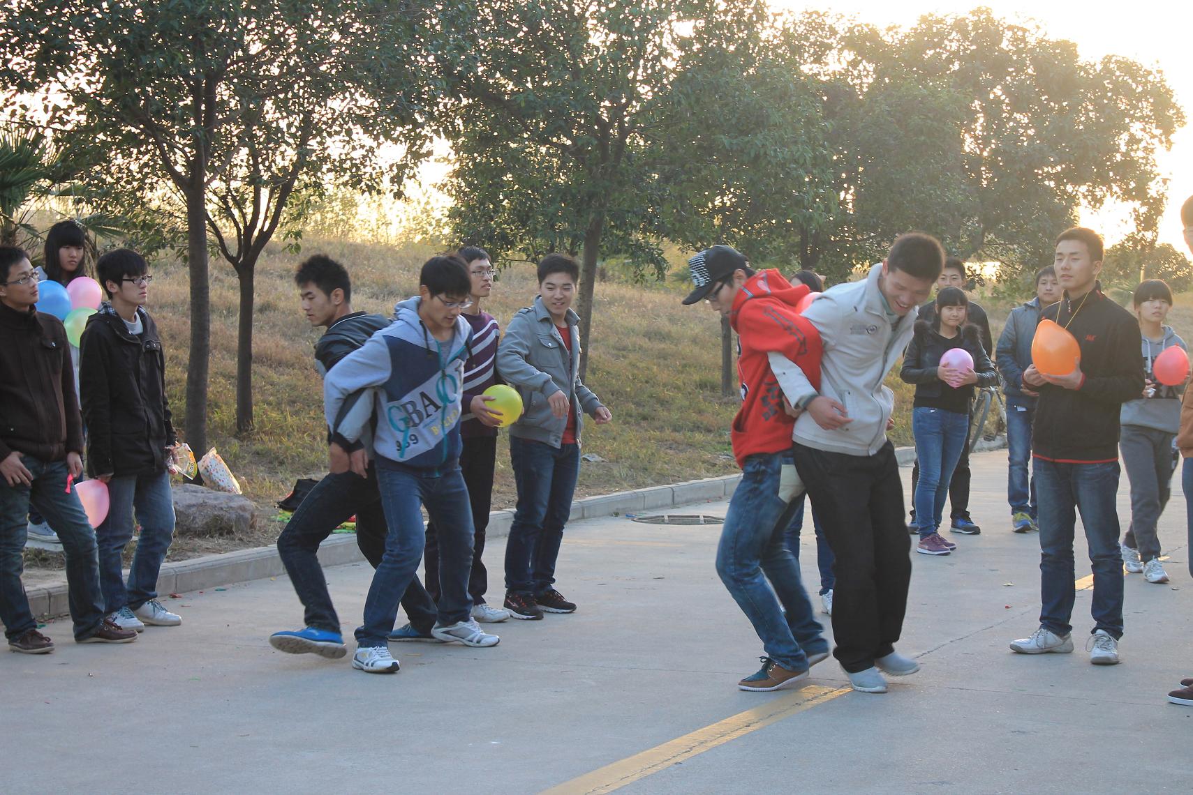 瑟瑟的凉风,涌动的人群。经过全面的准备之后,本次活动在一阵欢呼中拉开了帷幕。本次活动包括“信任背摔”、“七彩连环炮”、“搭桥过河”、“财源滚滚”、“螃蟹逃亡”和“缩小包围圈”六个项目。在“信任背摔”环节中,宣传中心主任首先表率,缓缓倒下中信任的微笑挂于嘴角,为各成员树立了一个良好的榜样。各部成员亦不甘示弱纷纷参与,在场人员时而屏气凝神,时而惊险过后继而欢声笑语,在不知不觉中,第一个环节已接近了尾声。在“搭桥过河”中,各部成员迅速组队进行技巧的较量,他们认真演练,探求技巧,争锋向前,以巧制胜,在竞争中体会到团结的意义所在。欢乐仍在围绕,精彩仍在继续。在“螃蟹逃亡”环节中,五颜六色的气球,在本组两名队员的协同下,于起点与终点之间来回跳跃,在速度的比拼中更是彰显了默契的配合的需要。在机智与力量的比拼——“缩小包围圈”环节中,所有成员瞬间齐发,敏捷的动作展现了新一代青年青春的活力。最后活动在宣传中心全体成员的协力配合下圆满结束。