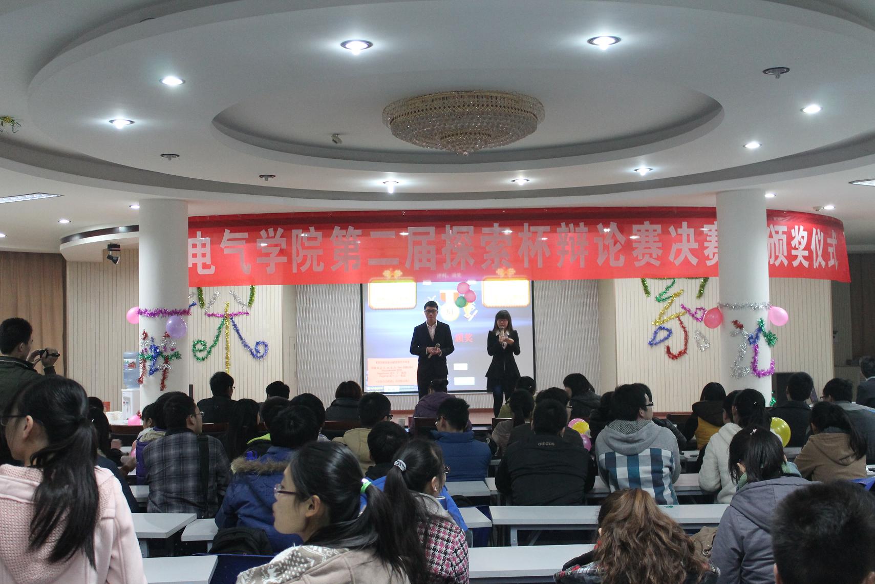 旁征博引舞青春,谈天说地赢未来。为丰富大学生的科学文化生活,培养同学们善思、善辩的能力,11月22日下午,5g影院 第二届“探索杯”辩论赛决赛及颁奖仪式在我校大学生活动中心二楼拉开帷幕。此次大赛由该院11级自动化专业主办,面向全院四个年级的所有学生。担任本场比赛的评委有:5g影院党委副书记王瑞、5g影院 全体辅导员等。