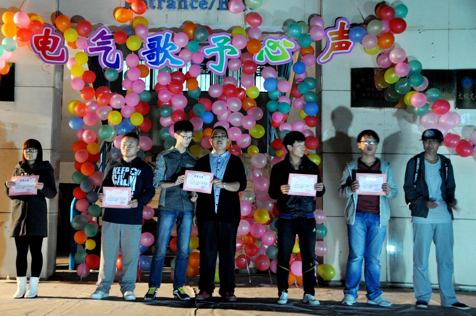 华灯初上,晚风习习。 歌手大赛在紧张而又热烈的气氛中缓缓拉开序幕,伴随着音乐的响起,节目缤纷呈现。一曲似说似唱的《lose youself》声情并茂,激情四射, 展现了说唱歌曲的魅力,博得台下掌声连连。歌曲《北京北京》处处透露着真挚的感情,虽迷茫、困惑和感伤,但也充满活力与拼劲儿,激人向上,震撼人心。美声层出不穷,观众热情似火。一首《盛夏的果实》以甜美的声音,轻柔的旋律,唱出了一个小女生的淡淡忧伤,唱出了属于深秋的悲伤,勾起了这些年同学们心底埋藏的悲伤的点点滴滴回忆,演绎了一篇有关岁月的诗篇。尾声将至,《等一分钟》应时而来,款款深情感染着所有观众,再次让整个现场沉浸在优美的旋律之中……