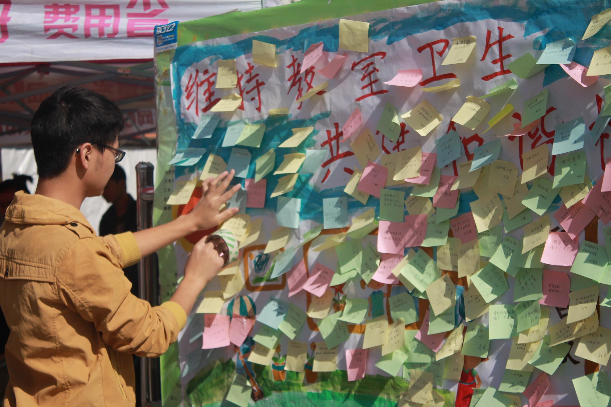 活动伊始,5g影院的志愿者们积极主动地向同学们宣传本次活动的主题,并耐心讲解教室维洁对维护校园与自身形象的重要性。活动开展不久便吸引了大多同学的关注并得到了肯定,不少同学表示此次宣传活动的主题反应了他们内心的真实想法,承诺会努力保持教室整洁,不留下废弃物,为营造洁净的教室献出自己的力量,并且在宣传板上贴上了带有自己口号的便利贴——“保持教室卫生是我们义不容辞的责任”、“一屋不扫,何以扫天下”等标语,还在宣传横幅上郑重签下了自己的名字。本次活动开展顺利,现场气氛热烈,得到了同学们的一致好评。最终同学们合影留念,并将条幅挂于公告栏与电气楼大厅,引导同学们积极保持教室卫生。