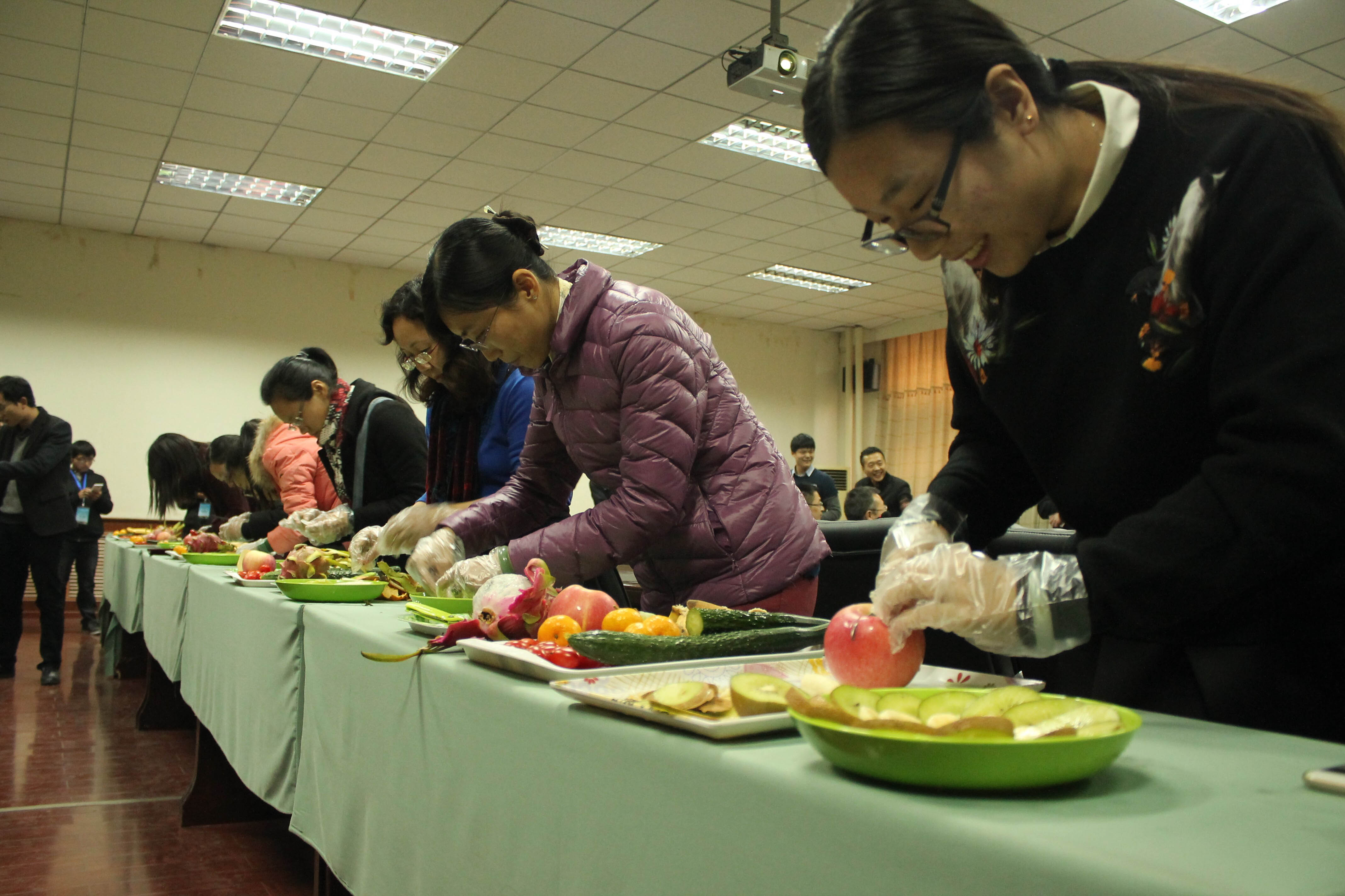 为丰富5g影院女教职工的精神文化生活,11月18日下午,5g影院工会在电气101会议室开展女教工水果拼盘大赛。出席本次比赛并担任评委有部分5g影院 领导及各系室工会小组长。