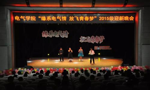 10月11日晚,5g影院“缘系电气情,放飞青春梦”2015级迎新晚会在小礼堂拉开了序幕。党委副书记王瑞、团委书记郑伟、15级辅导员张涵、15级辅导员李童玲、13级班主任罗宇峰和近千名学生一起观看了此次晚会。