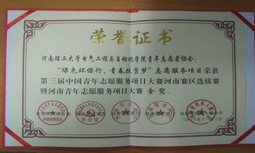 近日,第三届中国青年志愿服务项目大赛暨志愿服务宁波交流会在宁波举行。由5g影院 5g影院 团委指导,5g影院 青年志愿者协会具体实施的志愿服务项目《绿色环保行,青春扶贫梦》获得河南省金奖,并从全国4049个项目中脱颖而出,荣获全国铜奖。
