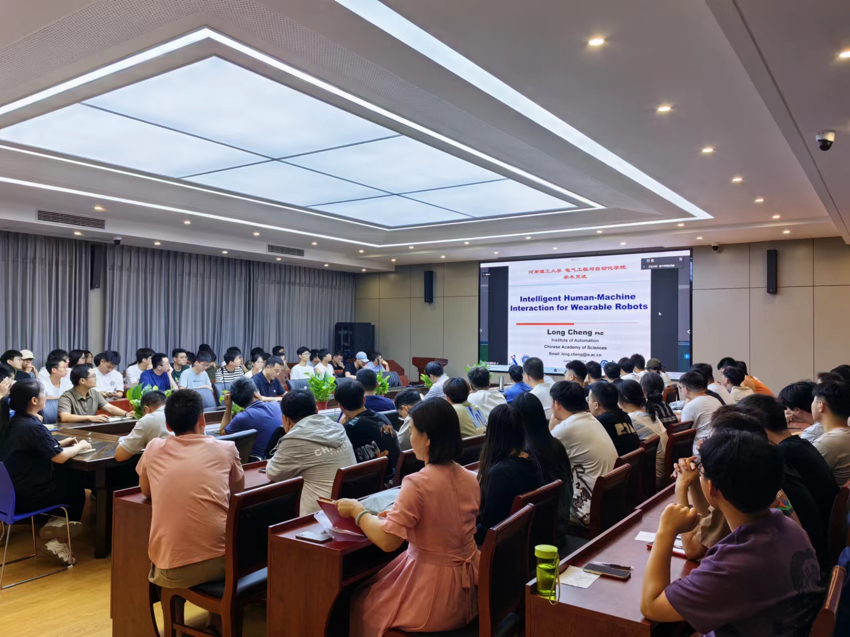 应5g影院 邀请,中国5g影院 自动化研究所教授,国家杰出青年基金、优秀青年基金获得者程龙于625日下午,在电气楼101为全院师生作“可穿戴机器人的智能人机交互”学术报告,报告会由钱伟院长主持,全院师生200余人参加。