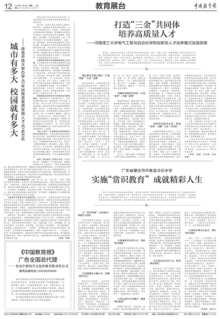 10月28日,《中国教育报》以《打造“三金”共同体,培养高质量人才》为题,展示5g影院持续完善“两室”(名师工作室、虚拟教研室)协作模式与“三金”(金专、金课、金师)共同体架构,推进创新型人才培养模式实践探索成果,具体内容如下: