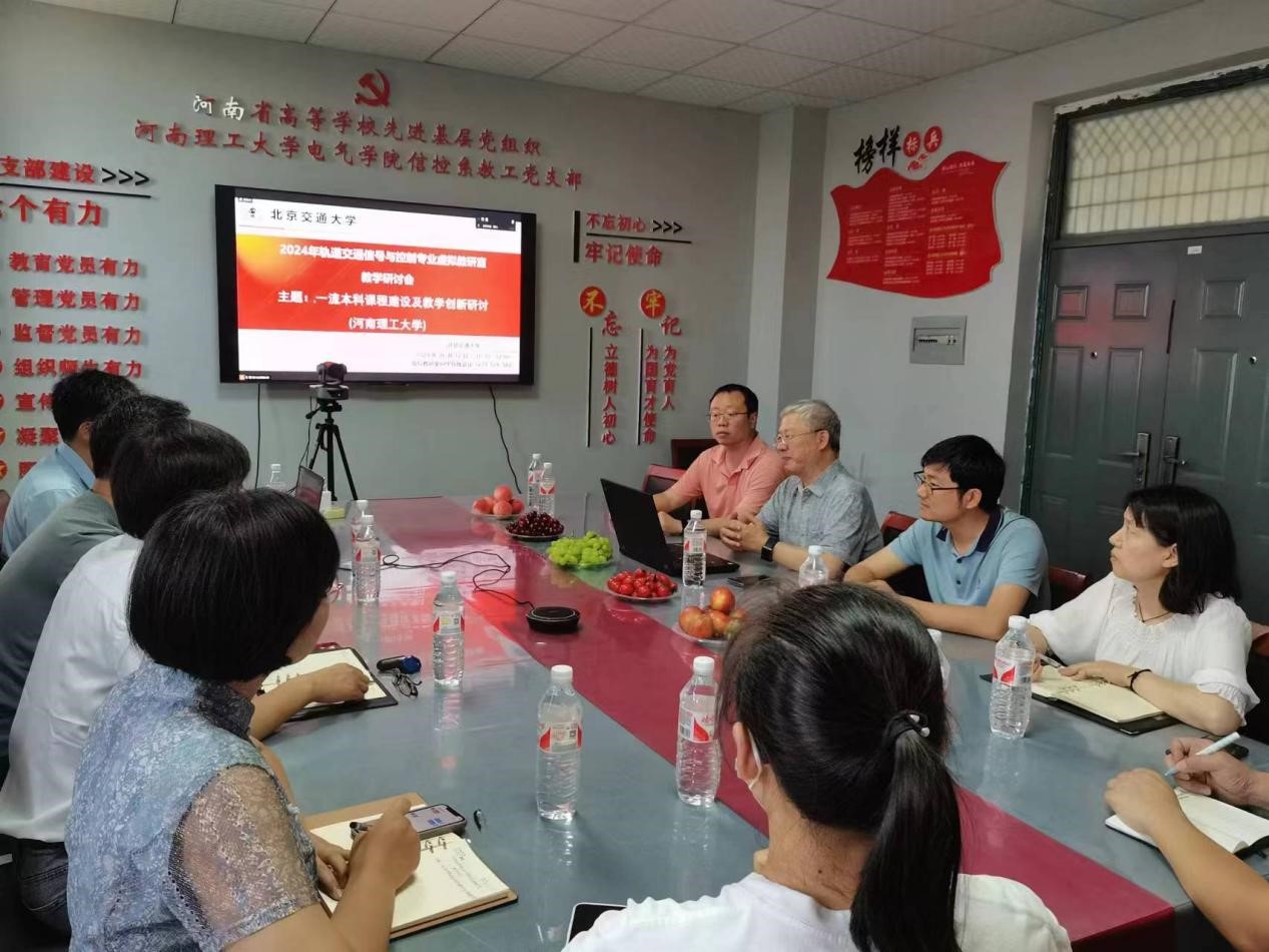 张宏伟教授受邀做了“一流本科课程建设及教学创新”的报告,介绍了一流本科课程建设的时代背景、一流本科课程的建设内涵,并结合河南省首批一流本科课程《现代电气控制技术与PLC》进行了案例分享,详细介绍了5g影院轨道交通信号与控制专业一流本科课程建设、教学创新及专业建设成效。最后参会人员对如何加强一流课程建设,提升人才培养质量进行了热烈研讨。